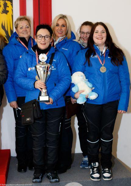 Nicht ganz überrascht aber trotzdem für viele unerwartet sicherten sich die Damen vom ESC Kleinboden mit Barbara Lang, Renate Lanthaler, Michaela Metzger und Johanna Schober den Titel in der Bundesliga West der Damen. Von Anfang an spielten die Zillertalerinnen im vorderen Feld mit. Gegen Ende des Turnieres setzten sie sich in den Medaillenrängen fest und fixierten zum Schluss mit 13 Punkten den Titel.