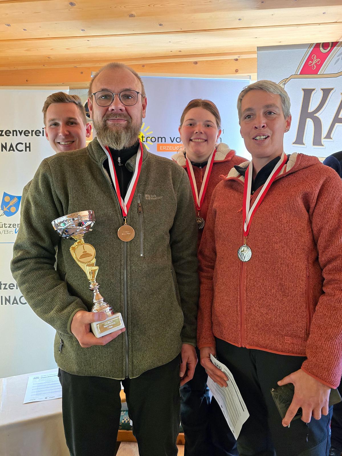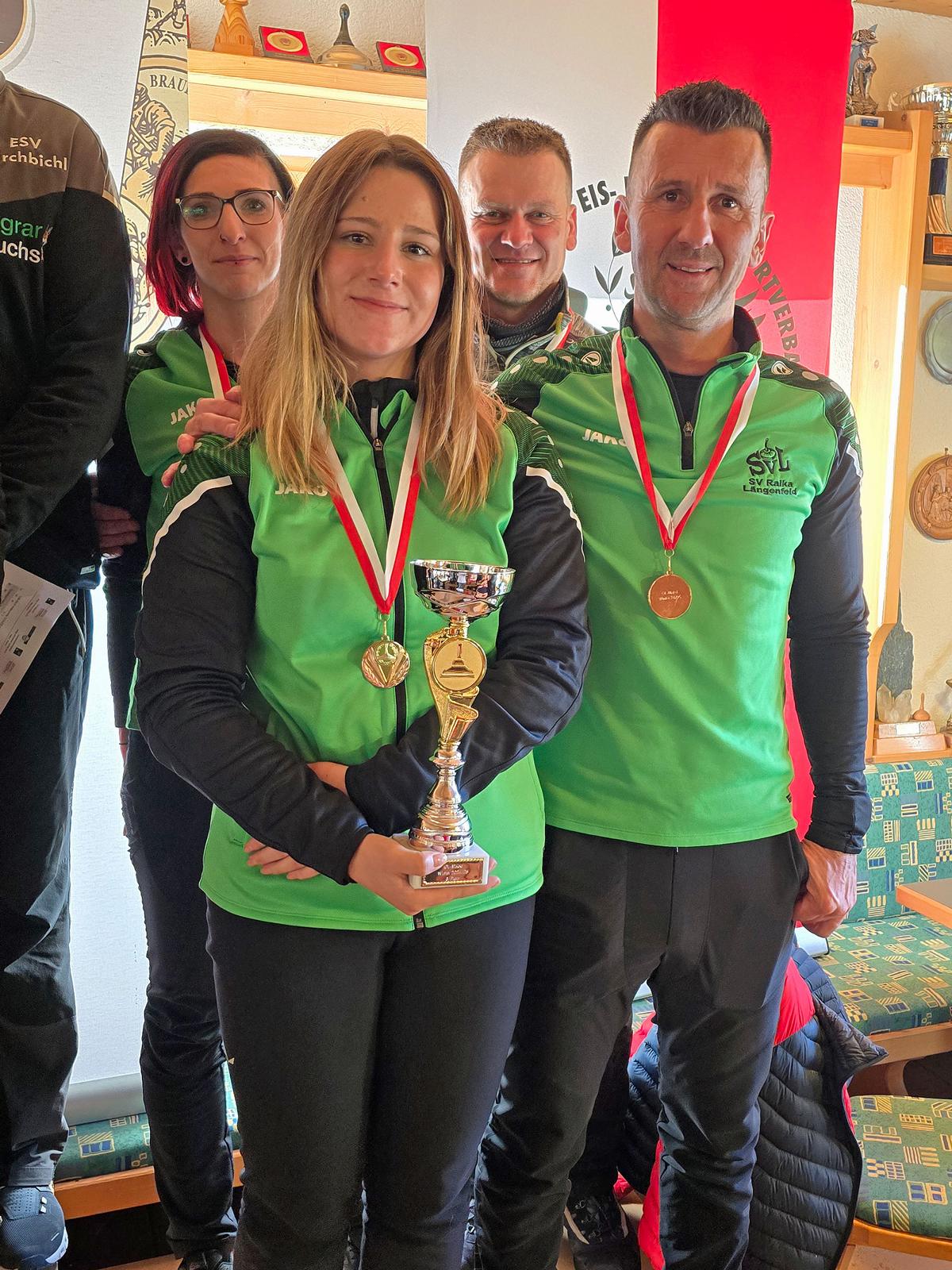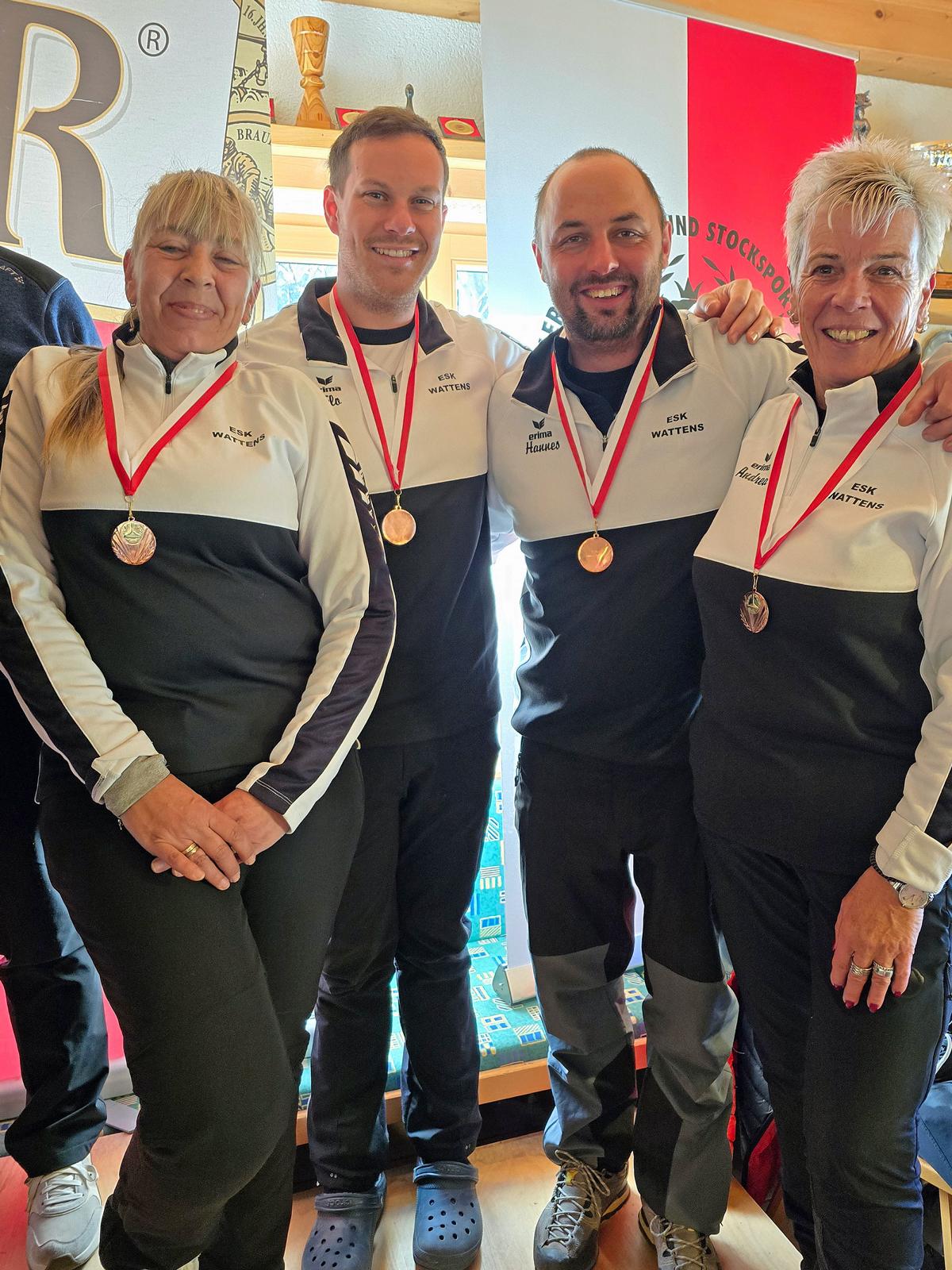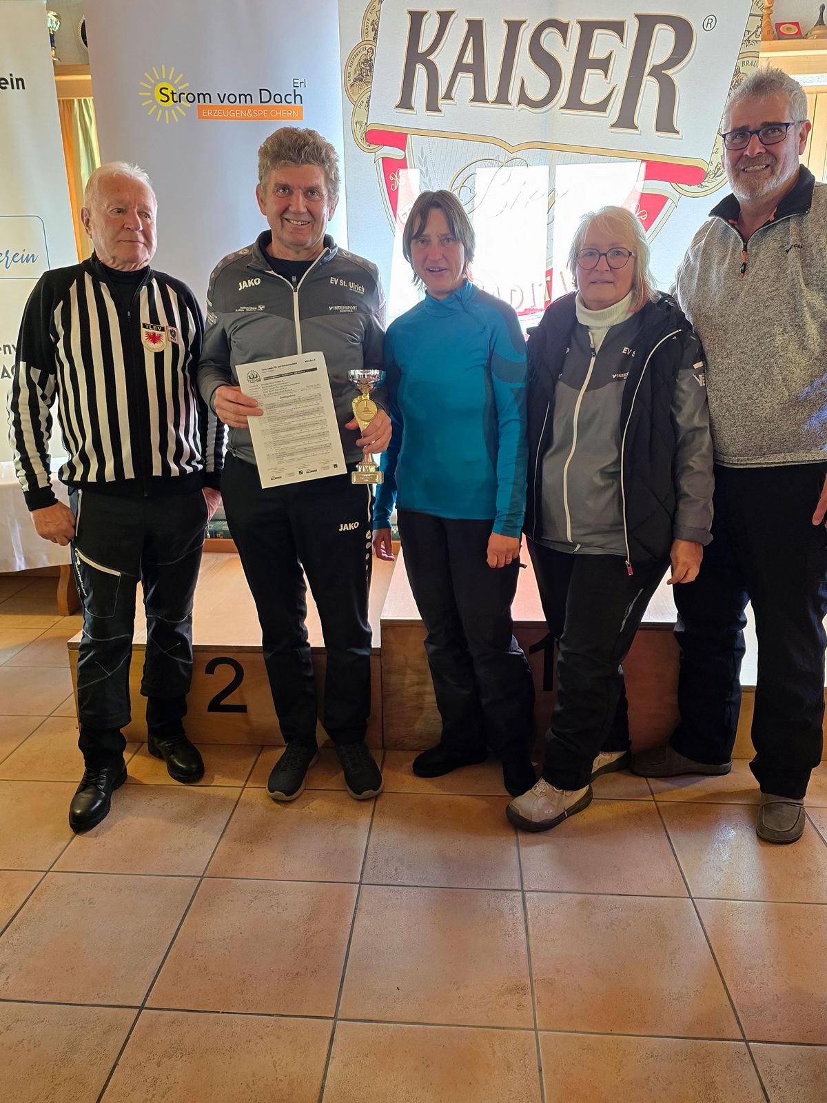 Ebenso mit einer Niederlage siegte der EV Angerberg (Christina Häusler, Martin Müller, Peter Gschwentner, Monika Danler). Rang zwei ging punktegleich an den SC Breitenwang 2. Dahinter freut sich auch der ESK Wattens über den Aufstieg.