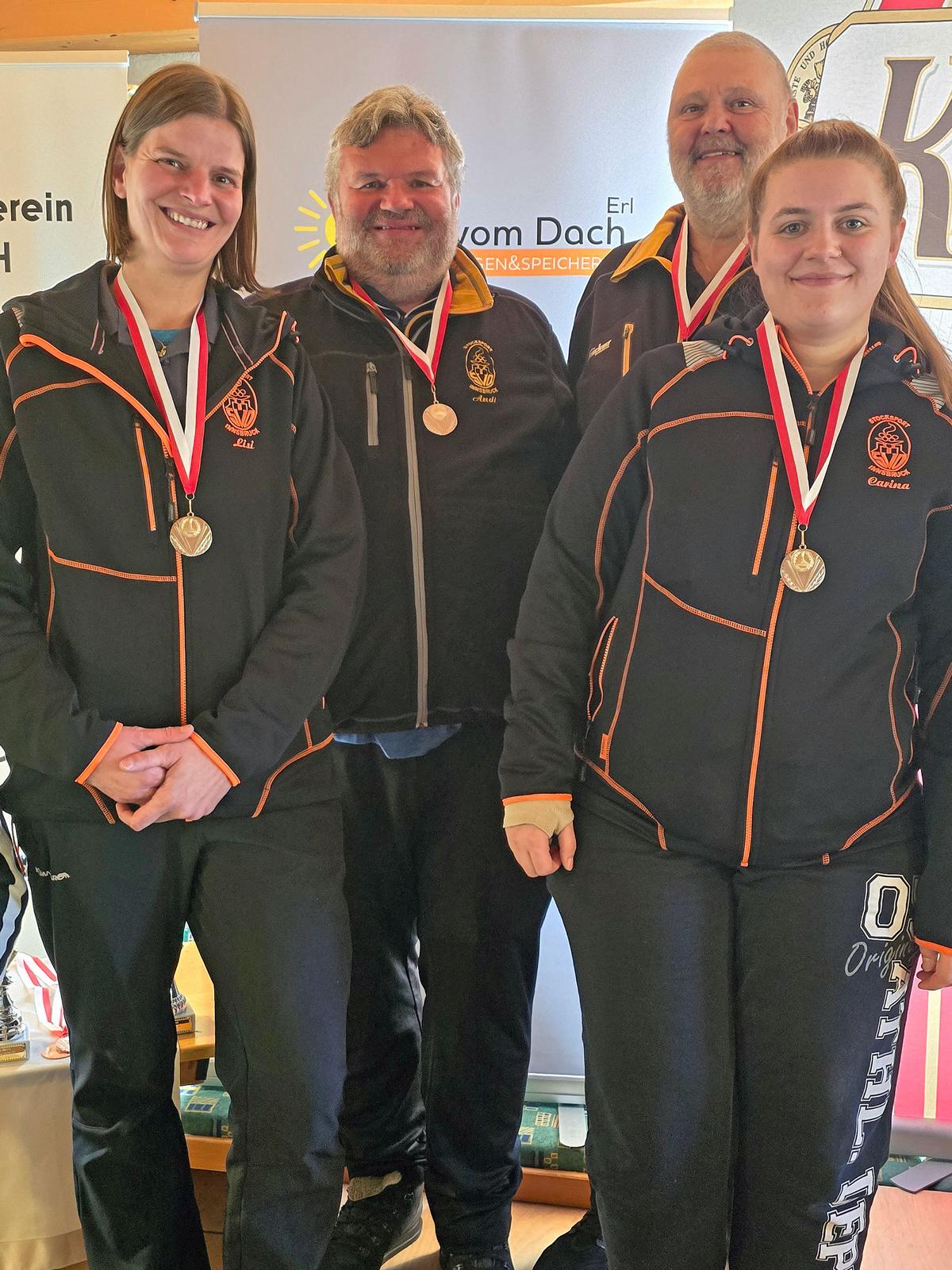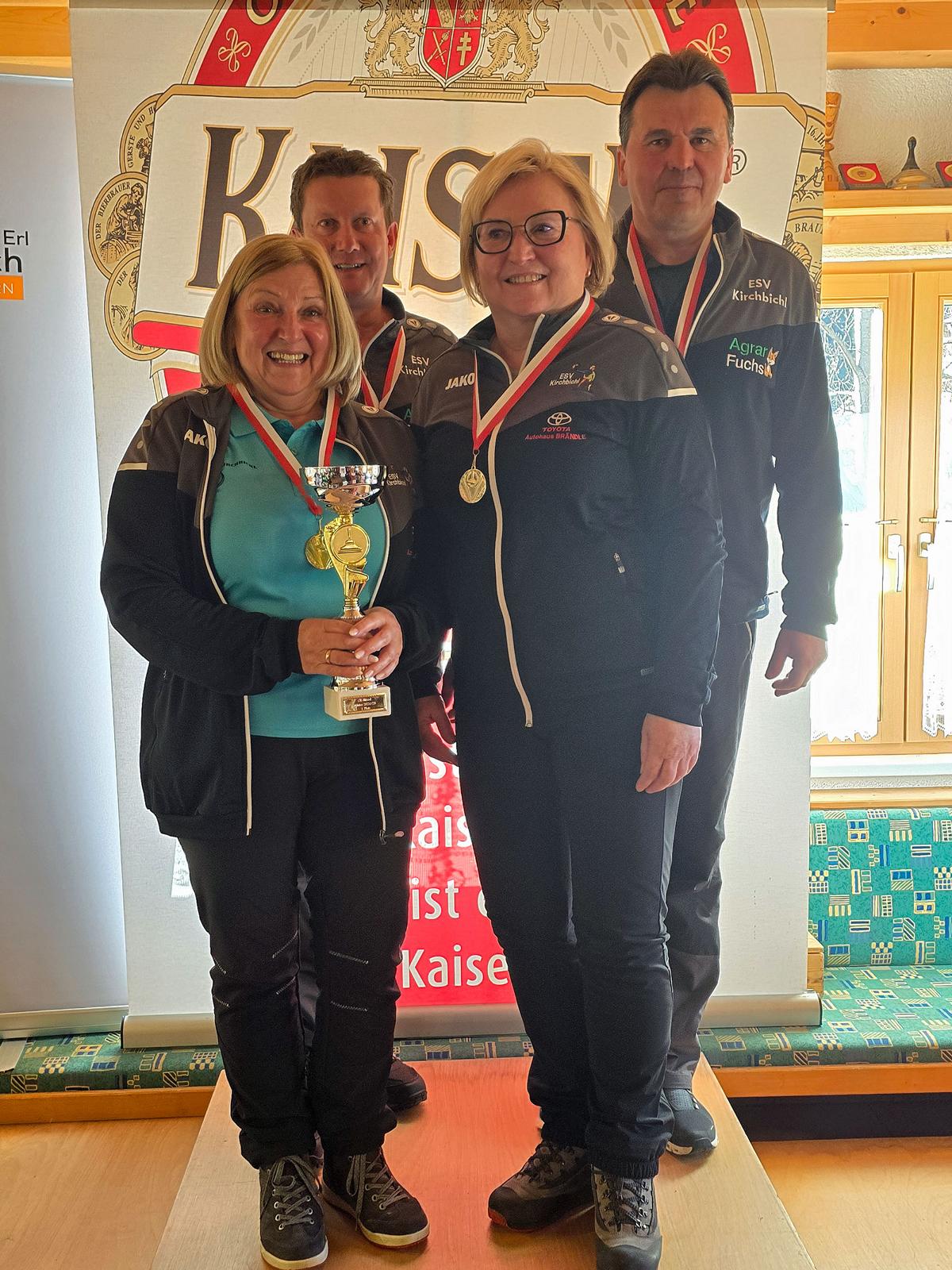 Mit nur einer Niederlage siegte der ESV Kirchbichl 1 (Susanne Lichtmannegger, Elisabeth Steiner, Friedl Fankhauser, Hubert Pfandl) vor dem SV Olympisches Dorf 1 und dem SV Raika Längenfeld