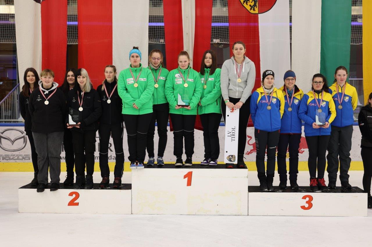 Den zweiten Titelgewinn sicherten sich in der Klasse Jugend weiblich U19 die Auswahl des TLEV. Frisch von der EM/WM in Ritten (ITA) zurückgekehrt holten sich Melanie Leiter (ESC Imst) und Angelina Gfäller (SV Breitenbach Stocksport) mit Unterstützung ihrer Teamkolleginnen Sina Rieger (SC Breitenwang), Carina Schwaiger (SV O-Dorf) und Nina Moser (SV Breitenbach Stocksport) in einer sehr knappen Entscheidung, dank des besseren Quotienten, den Titel.