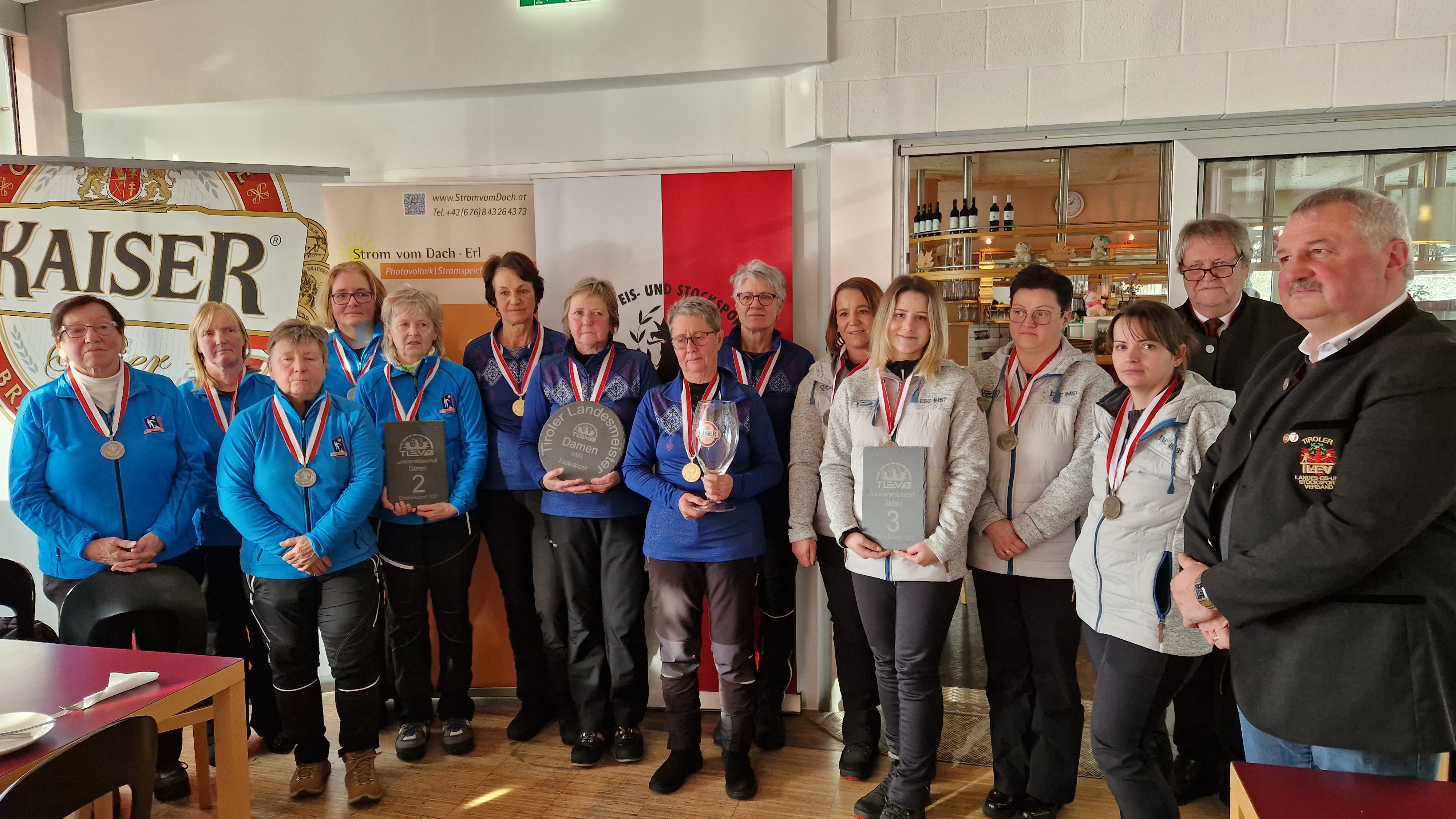 Der SV Aschau i.Z. mit Elisabeth Schweinberger, Angela Taxacher, Helene Klocker und Elisabeth Holaus sicherte sich mit 14:2 Punkten den Titel bei der LM Damen. Mit 12 P dahinter erreichte der ESV Schwoich (Silvia Obermaier, Bärbel Wechselberger, Maria-Luise Obermaier, Elisabeth Schwaighofer und Gerda Ritzer) Rang 2. Bronze ging ins Oberland zum ESC Imst (Klaudia Kaiser, Melanie Leiter, Cornelia Leiter, Eva Maria Walter)